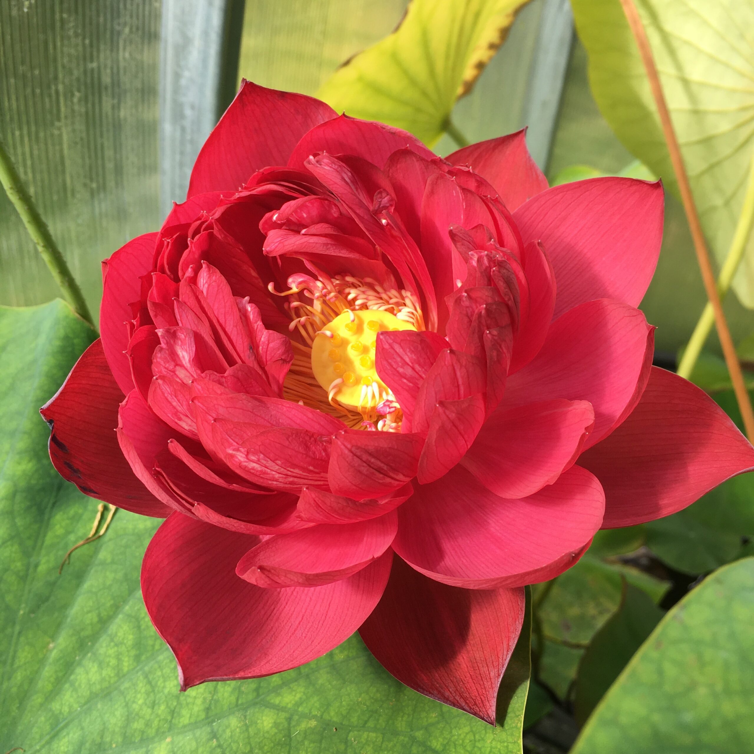 Średniej wielkości lotos pochodzący z Chin. Posiada intensywnie czerwone, podwójne kwiaty, których dopełnieniem jest złociste dno kwiatowe. Zdarza się, że na niektórych płatkach pojawiają się ciekawe, białe przebarwienia. Do tej pory ten lotos rósł u nas w pojemnikach 45-litrowych, ale prawdopodobnie poradzi sobie także w około 20-25-litrowych.
