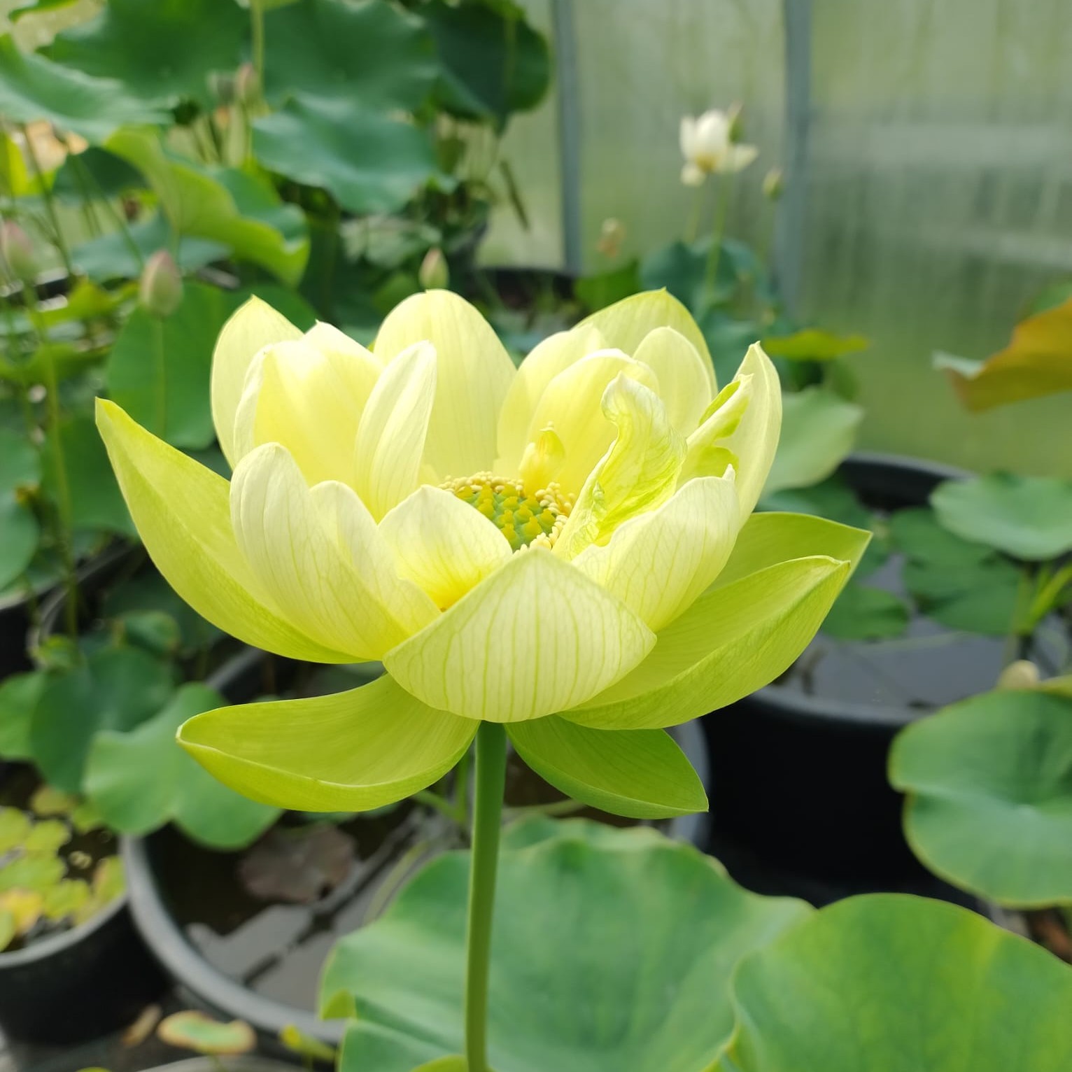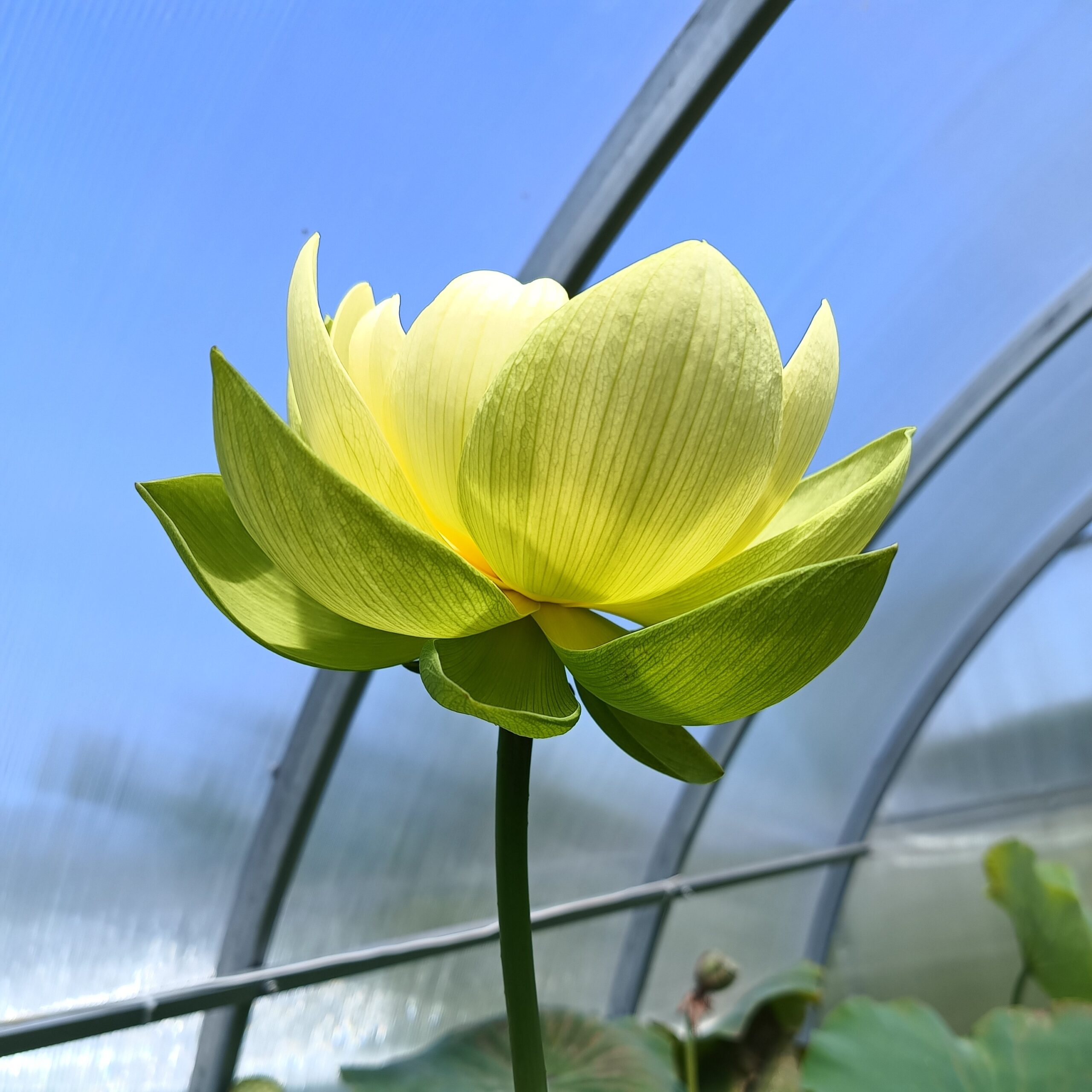 Średniej wielkości odmiana należąca do grupy tzw. zielonych lotosów. Posiada soczyście zielone pąki i żółtozielone płatki. Dno kwiatowe stopniowo ciemnieje, osiągając głęboki, jadeitowy, niebieskawy odcień.