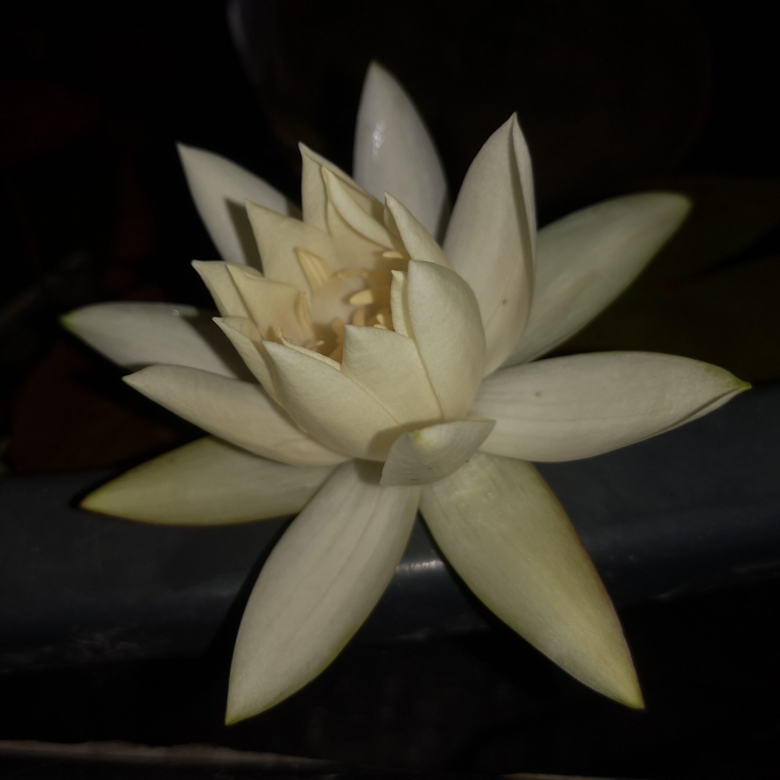 Jej delikatnie beżowe kwiaty otwierają się wieczorem na kilka godzin. W tym czasie uwalniają intensywną, wyczuwalną z odległości woń ananasa z pikantną domieszką. Stosunkowo nieduże, wydłużone liście mogą przybierać barwy od zieleni, przez pomarańcz aż do czerwieni – im silniej nasłonecznione jest ich stanowisko, tym bardziej czerwone liście.