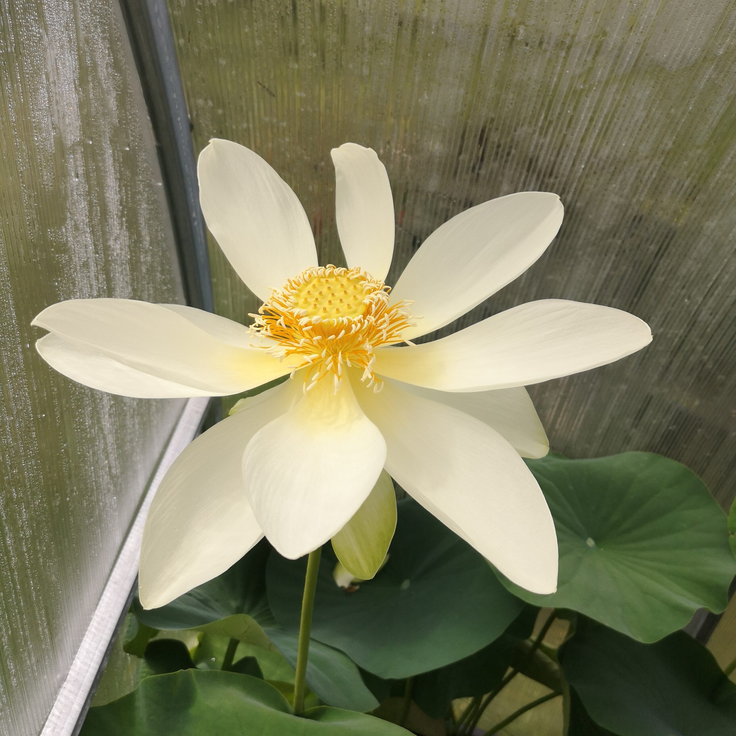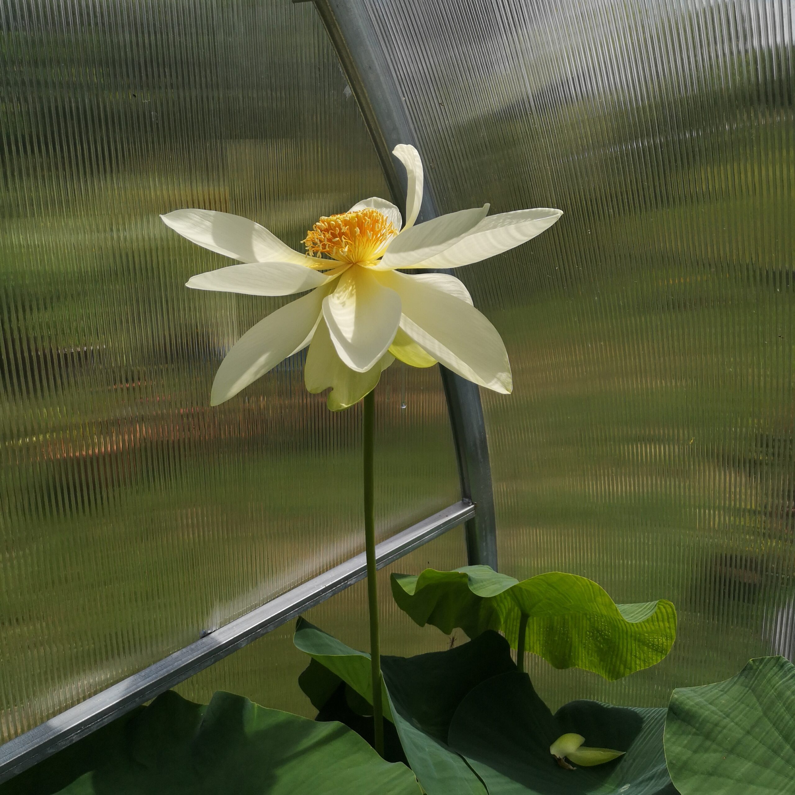 Odmiana o ogromnych, spektakularnych, jasnokremowych kwiatach. Przypomina lotos amerykański Nelumbo lutea, jednak jest od niego znacznie większa. Wymaga sporo miejsca do wzrostu – do tej pory nie udało nam się uzyskać kwiatów w kastrach mniejszych niż 90-litrowe.