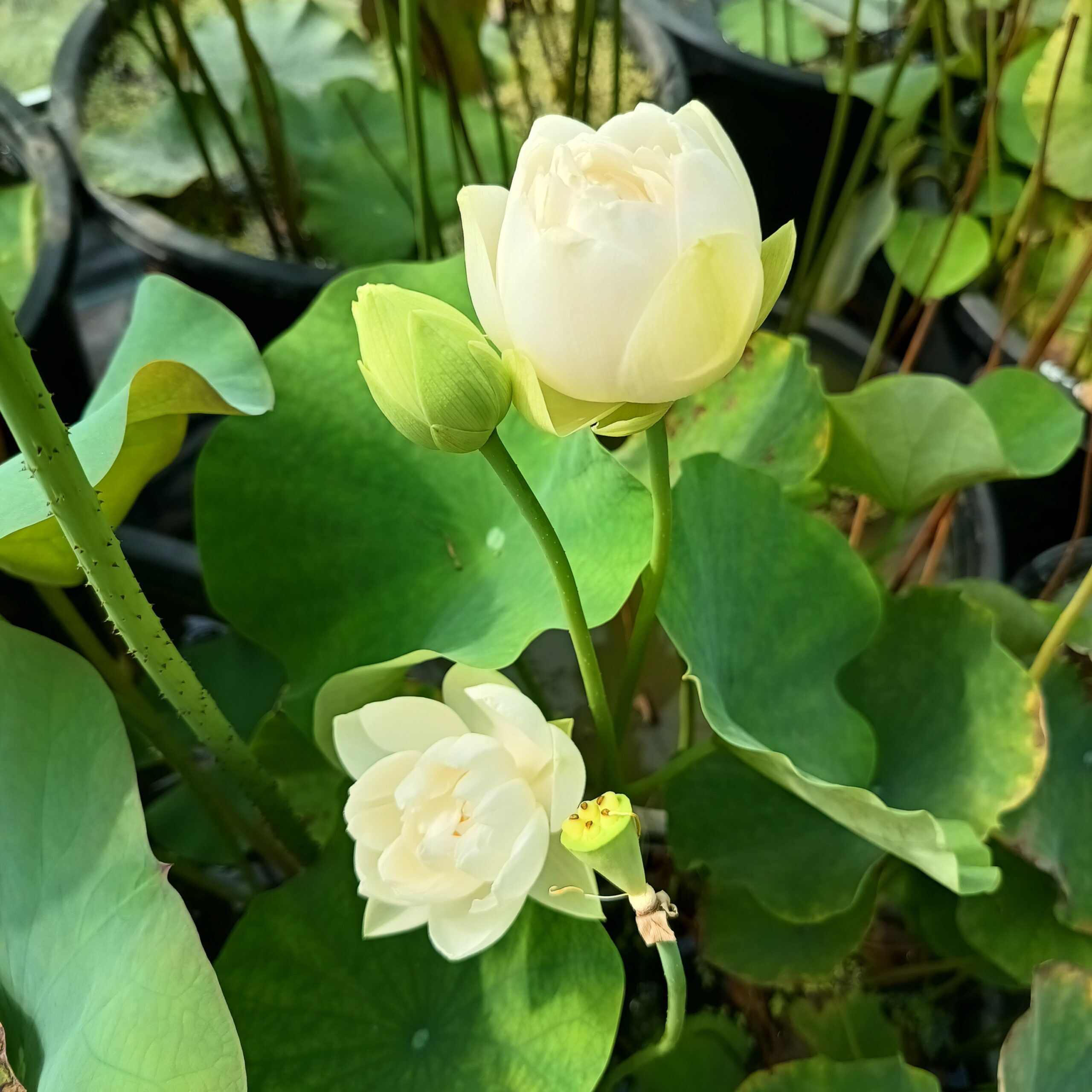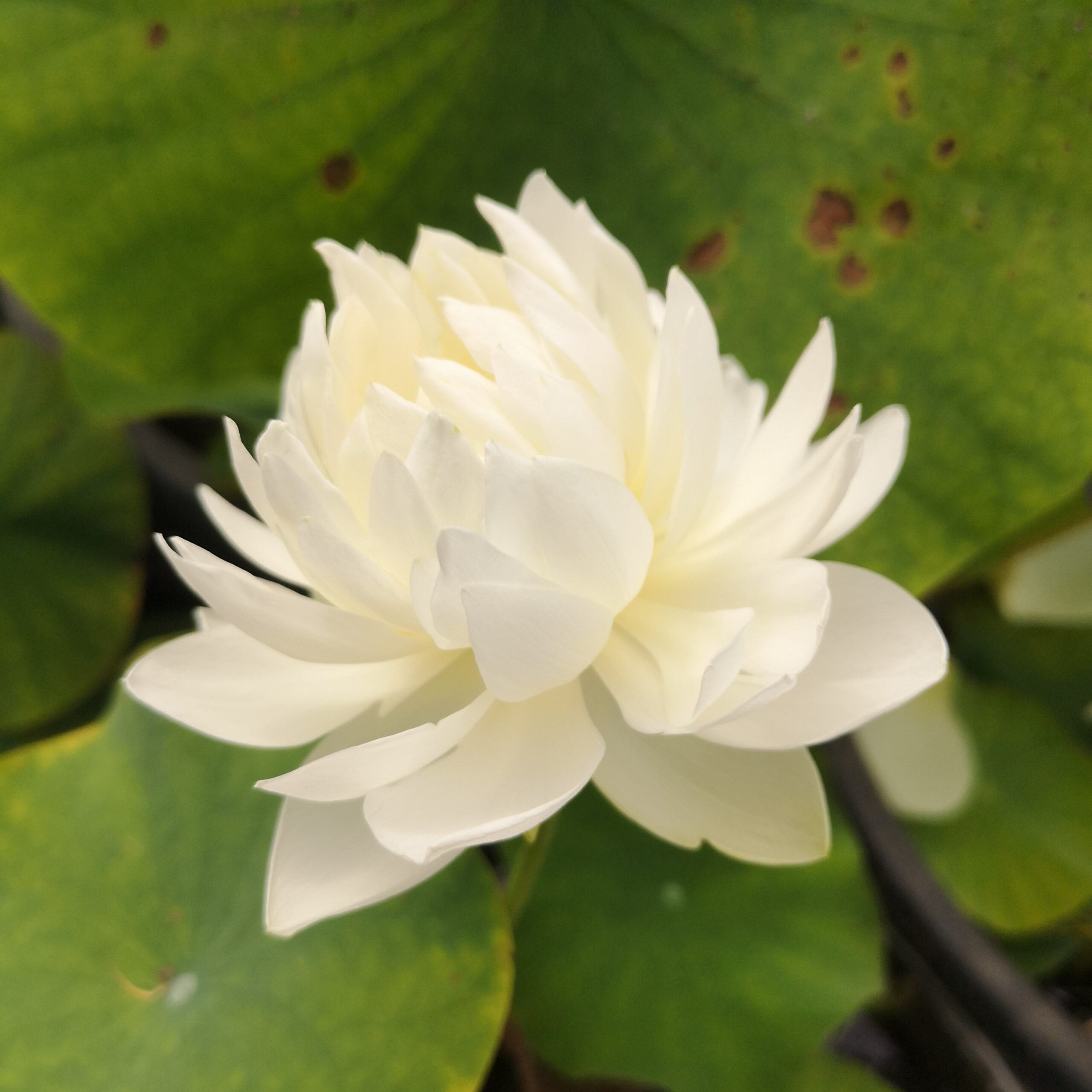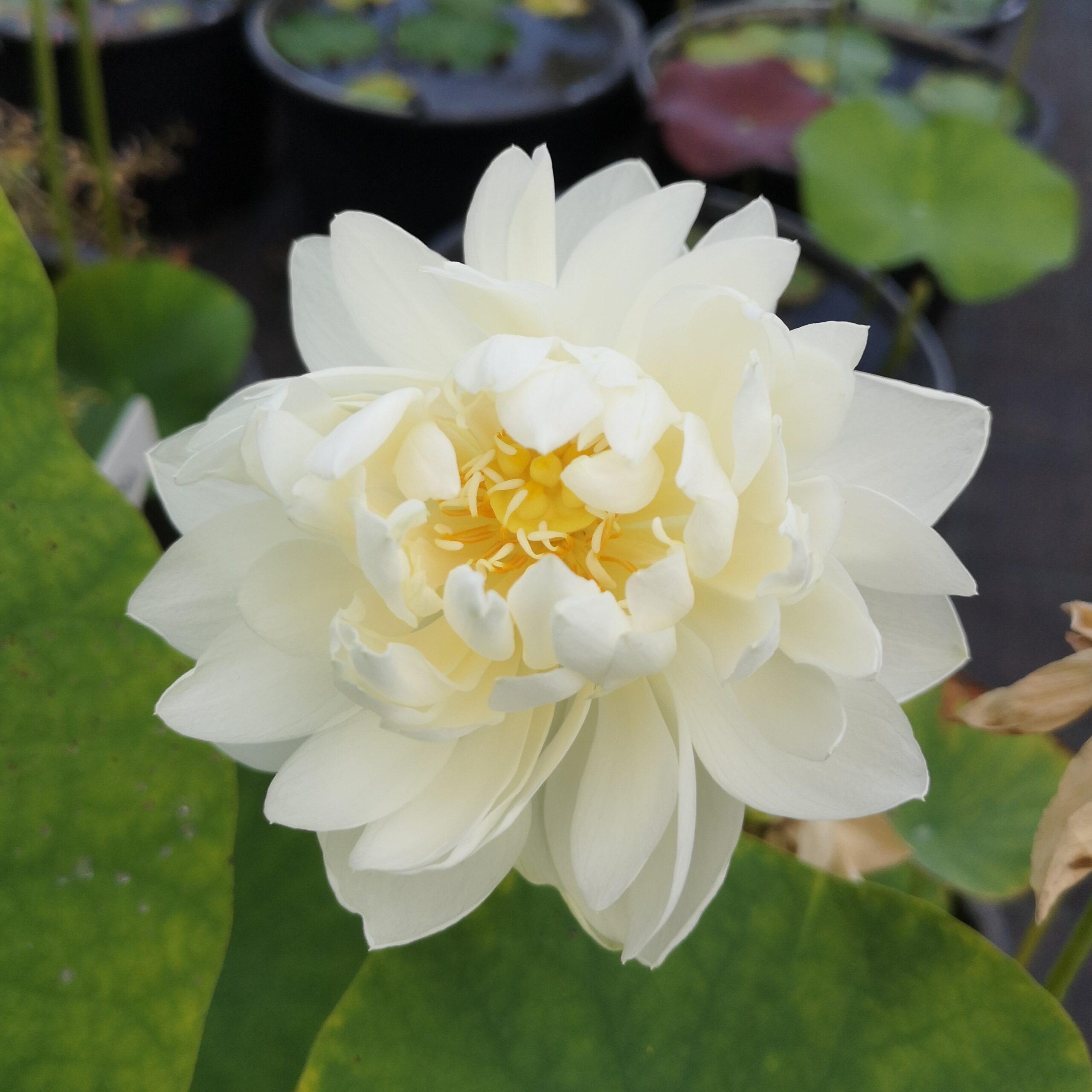 Miniaturowy, bardzo chętnie kwitnący lotos. Kwiaty pełne lub podwójne, białe, o licznych, wąskich płatkach.